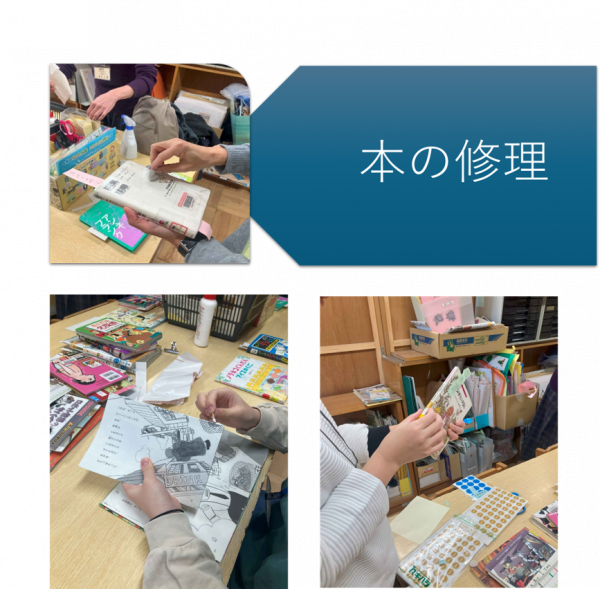 借りた本が破けてページが取れてしまった場合は、セロハンテープなどは貼らずに、学校の図書館のカウンターにお持ちください。