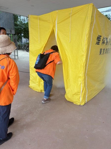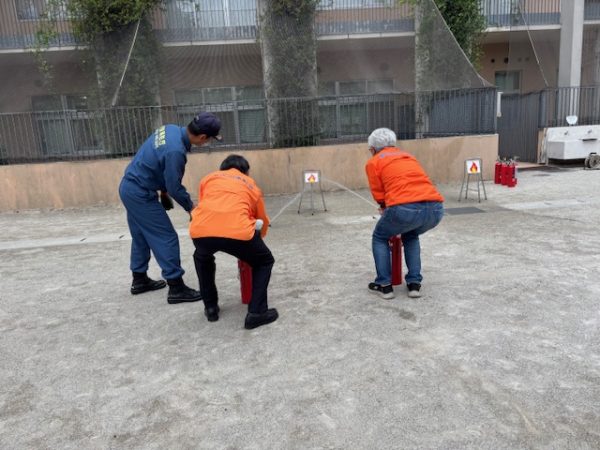 令和7年9月20日(土)午後1時から天沼小学校に於いて天沼8町会合同防災訓練が行われました。①消火器体験、②起震車体験、③けむり体験、④AED体験をグループごとに体験しました。