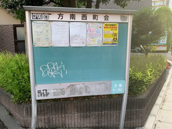 その掲示板に落書きがあり、「治安悪化を防ぐため、落書き除去の対応をしてほしい」旨依頼がありました。