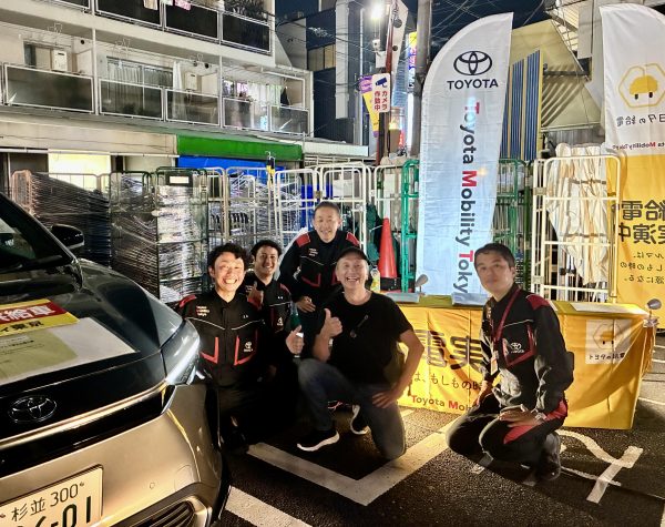 方南銀座商店街振興組合主催のHONANエイサー&ミュージックフェス前夜祭に、方南西町会特別会員のトヨタモビリティ東京株式会社代田橋店様がワークショップを開設されました。前夜祭会場であるリパーク東口駅前駐車場の照明、音響設備の電源を、EV(電気乗車)から電気供給!「この消費電力だったら、6日間連続OK!」とのこと。素晴らしいパフォーマンスでした!