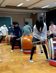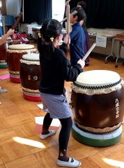 月に1度、和太鼓文化研究会の山本治美先生に指導していただいています。