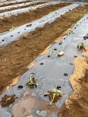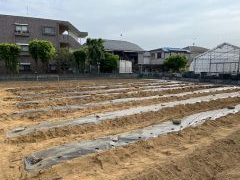 今年も耕運機を使い、土を耕し、柔らかい土で作ることができました。マルチシートで畝を覆いました。