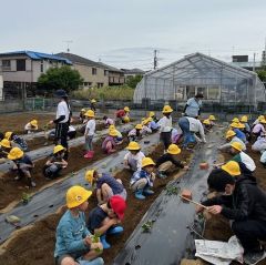 先生から植え付け方を教えてもらい、支援本部もサポートしながら頑張って植え付けしていました。