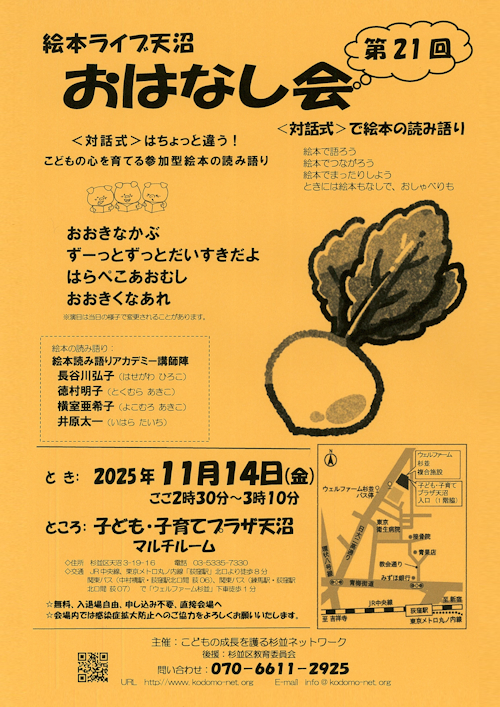 料金:無料/会場:区立中央図書館 地下ホール/種別:その他/対象:どなたでも,乳幼児親子向け,小学生向け(子育て中の保護者、保育・教育関係者、絵本の好きな方)/記事掲載日:2025年10月30日