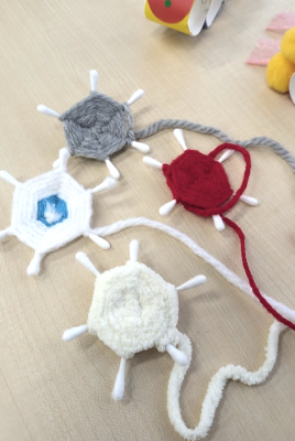 工作は、❄毛糸と綿棒で、雪の結晶を作りました。