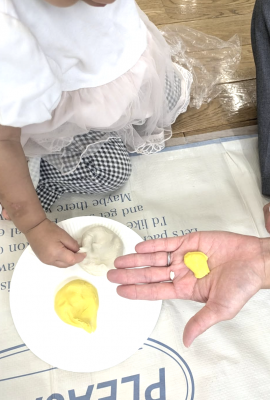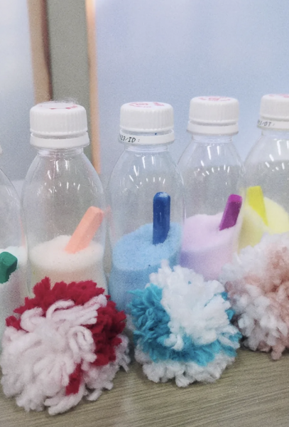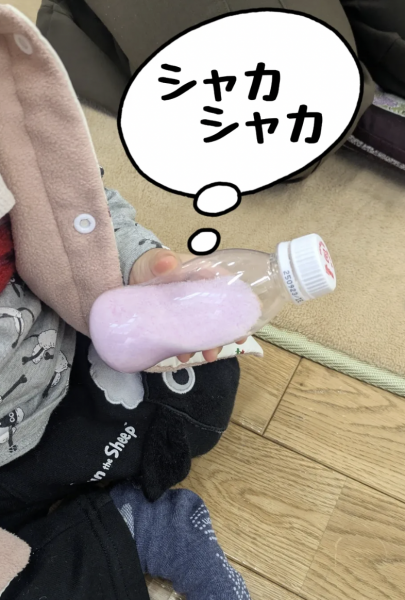 お塩とチョーク🖍️が 入っていて、振れば振るほど、お塩にチョーク🖍️の色が付きます😊