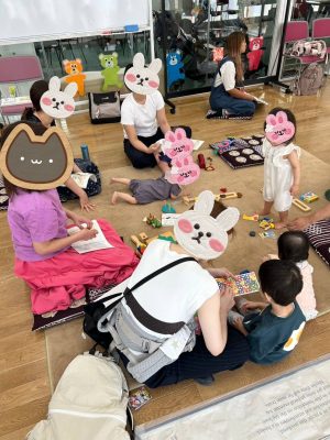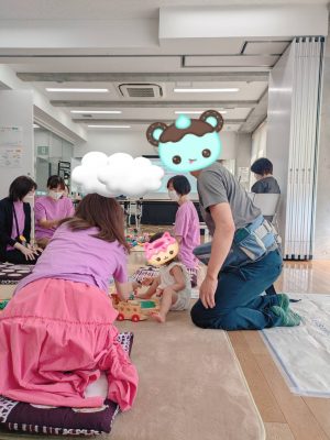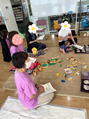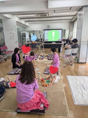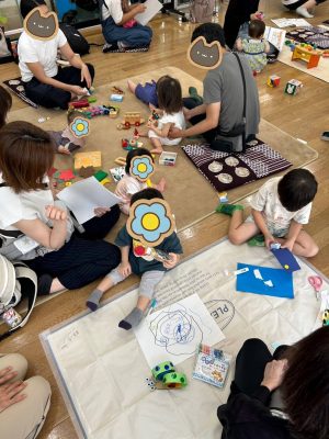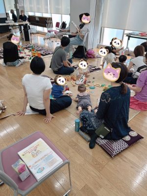 絵本をみたり、木やフェルトのおもちゃで遊んだり、工作を楽しんだりと、講演の一時間の間も、いつも通りに 過ごされていましたよ![]()
