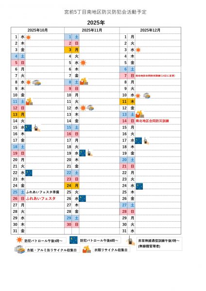 1. *New 12月14日(日)は南北地区合同防災訓練を行います。