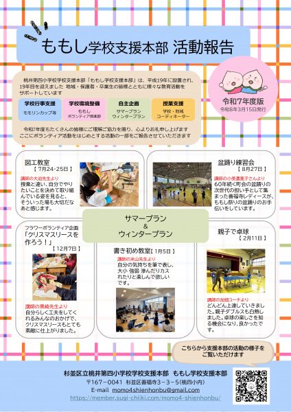 リーフレット こちらでは年に一度発行される活動報告をご覧頂く事ができます 【2026年3月15日発行】2025年度活動報告 【2025年3月15日発行】2024年度活動報告 【2024年3月15日発行】2023年度活動報告 【2023年3月15日発行】2022年度活動報告 【2022年3月15日発行】2021年度活動報告