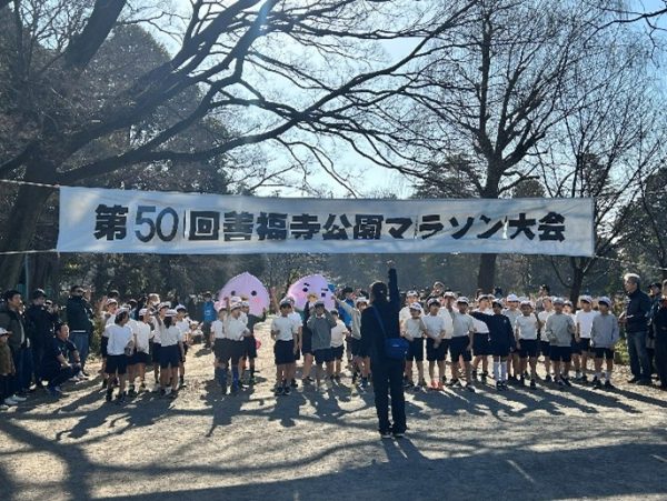 2026年1月17日(土)、第50回となる善福寺公園正月マラソン大会が開催されました。 寒さが心配されましたが穏やかな良い天気に恵まれ、9時から3年生、2年生、1年生の順でスタート。上池を1周走り、続いて4年生、5年生、6年生が2周走りました。