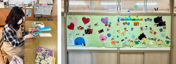 1月29日(木)12:25~ 本の森のガイドさんがラベルの貼り替えをしてくださっていました。廊下には季節の飾りつけもしてくださっていますので、是非ご覧になってください。