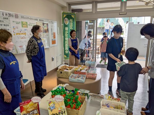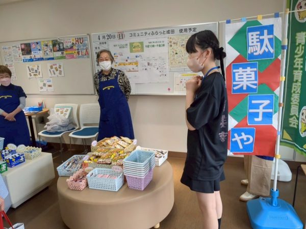 みんなの成田フェスタふらっと成田まつりが4月20日(日)にありました。成田青少年育成委員会は駄菓子屋さんで参加しました。今年は、駄菓子屋さんは好評につき早めに完売しました。お手伝いのベーグル販売も完売でした。