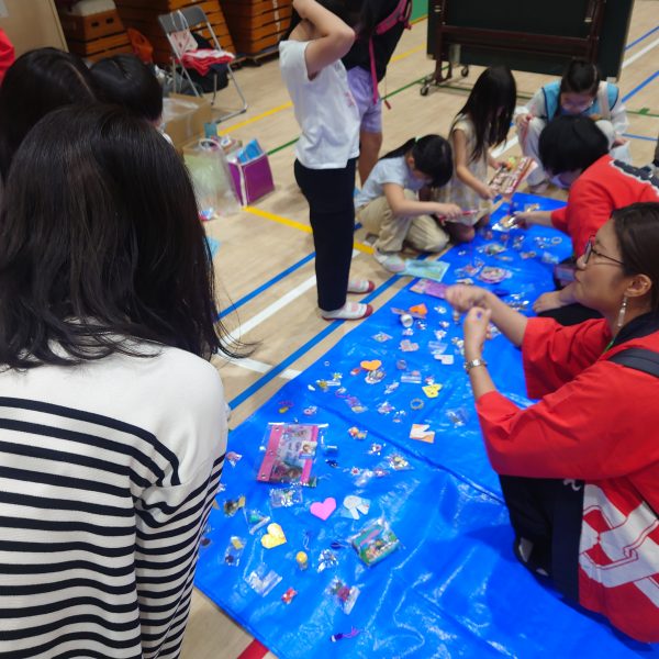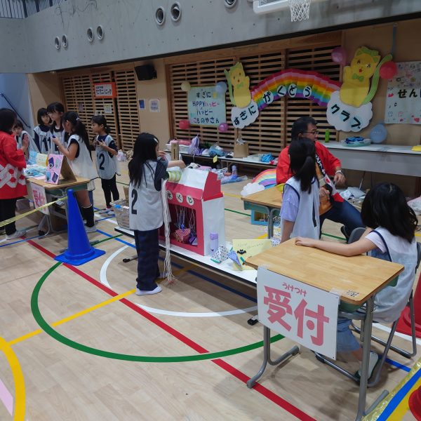 毎年恒例、みんなが楽しみにしている「あそび市」。松渓中で賑やかに開催されました。成田育成は、受付の仕事でお手伝いしました。