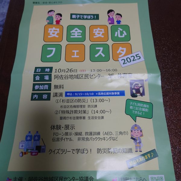 阿佐ヶ谷地域区民センターで「安心安全フェスタ」がありました。成田青少年育成委員会の仲間が、パッククッキングで参加しました。パッククッキングは、発災時に役に立つ調理法です。みなさんもぜひ覚えておいてください。