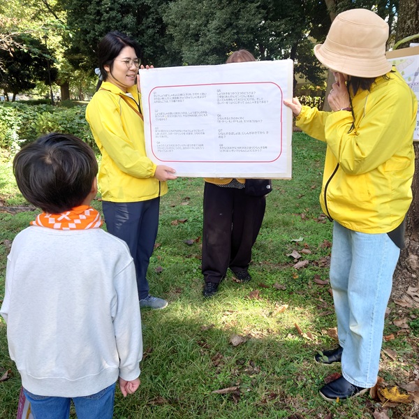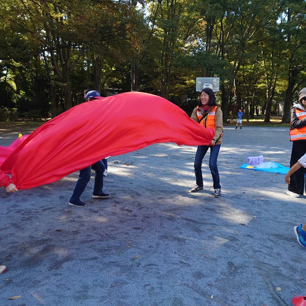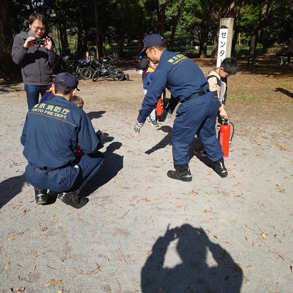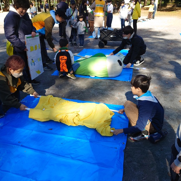秋の親子防災ウオークラリー 秋の親子防災ウオークラリー。秋晴れの下、毎年恒例の親子防災ウオークラリーを開催しました。ゲームは全部で13.防災の知識を高めようと親子で協力して体験しました。 動画でどうぞ。 https://photos.app.goo.gl/yrms8DuEFbJKrHBGA 善福寺川緑地センター広場 これからはじまるよ~! 西田小・杉二小・東田小の親子のみなさん集まりました。 初期消火訓練。重たい消火器から噴射! 1日または3日分の家族で必要な水運びゲーム 火事に見立てた赤い布を触れないように通り抜けます。 防災ダックというジェスチャーゲームです。 毛布のタンカでけが人を運ぶゲーム。物干し竿でトレーナーや上着を通したタンカも作りました。 車いすをおしてみよう! 実際に乗って自分で動かしてみました。