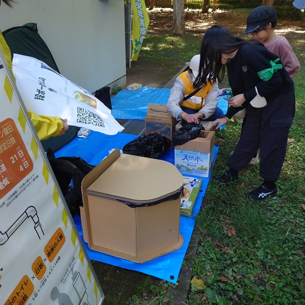 秋の親子防災ウオークラリー 動画でどうぞ。 https://photos.app.goo.gl/yBWXTHd4mxdyo5XF9 防災かみしばい 防災トイレ。ダンボウルトイレをつくりました。 実際座ってみました。体重60キログラムくらいまで大丈夫そうです。 おまけ〇✖クイズ 脚光を浴びている防災パッククッキング。かまどベンチにも実際火をいれました。 非常持ち出し袋の展示。家族構成で必需品がかわります。