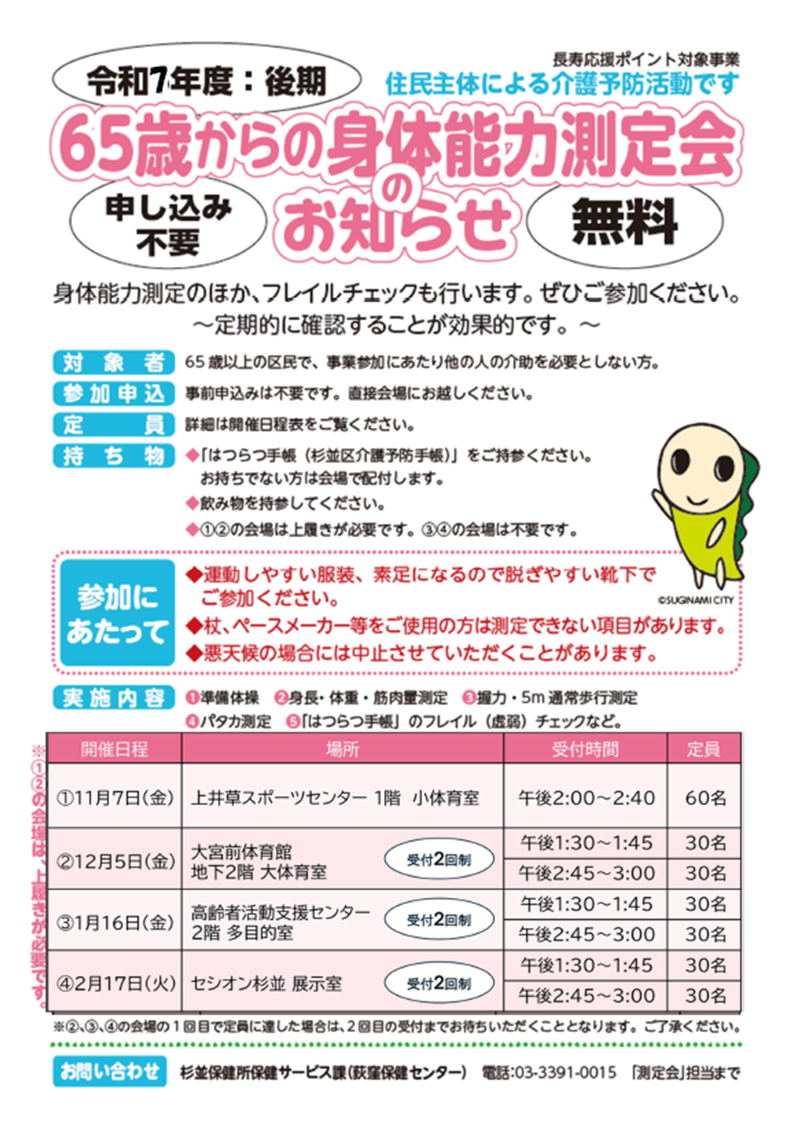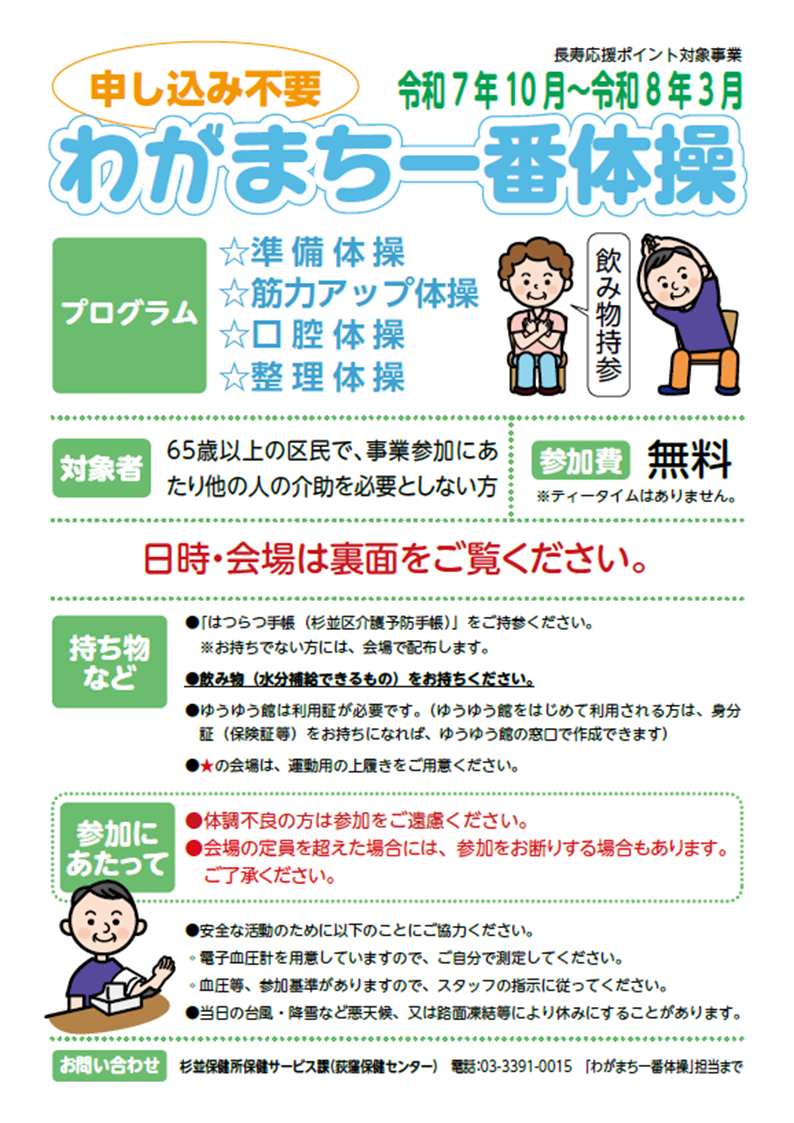 料金:無料/会場:大宮前体育館/地下2階/大体育室/種別:その他/対象:高齢者向け(65歳以上の区民で、事業参加にあたり他の人の介助を必要としない方)/記事掲載日:2025年11月14日