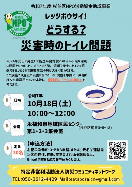 2025年10月18日開催のレッツボウサイ「どうする?災害時のトイレ問題」講座を見学してきました。