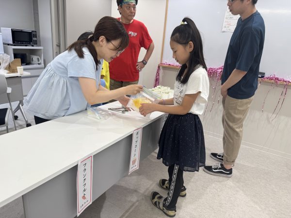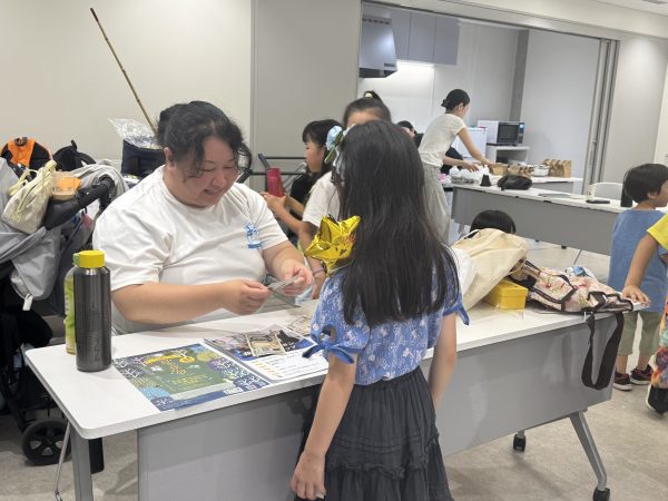訪問した日は残暑が厳しかったのですが、暑さ対策も万全で、エアコンに加え、お寺の扇風機と保護者の方から寄付していただいたサーキュレーターが稼働しており、快適に過ごせる工夫がされています。水分補給も忘れずに飲み物も準備され、安心して学べる環境が整っていました。最後は恒例のお菓子タイム。お家で食べてもらうようにしていますが、お友達とお菓子を交換するのも楽しみのひとつのようです。
