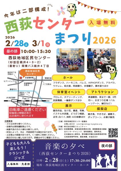 2026年2月28日(土)、西荻地域区民センターまつりに行ってきました。