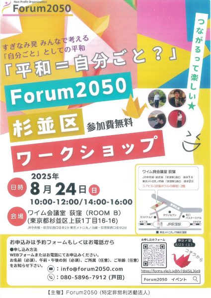 すぎなみ発 みんなで考える「自分ごと」としての平和「『平和=自分ごと?』Forum2050杉並区ワークショップ」を見学しました。