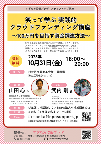 ●対象:杉並区内で活動しているNPO法人や地域団体の方