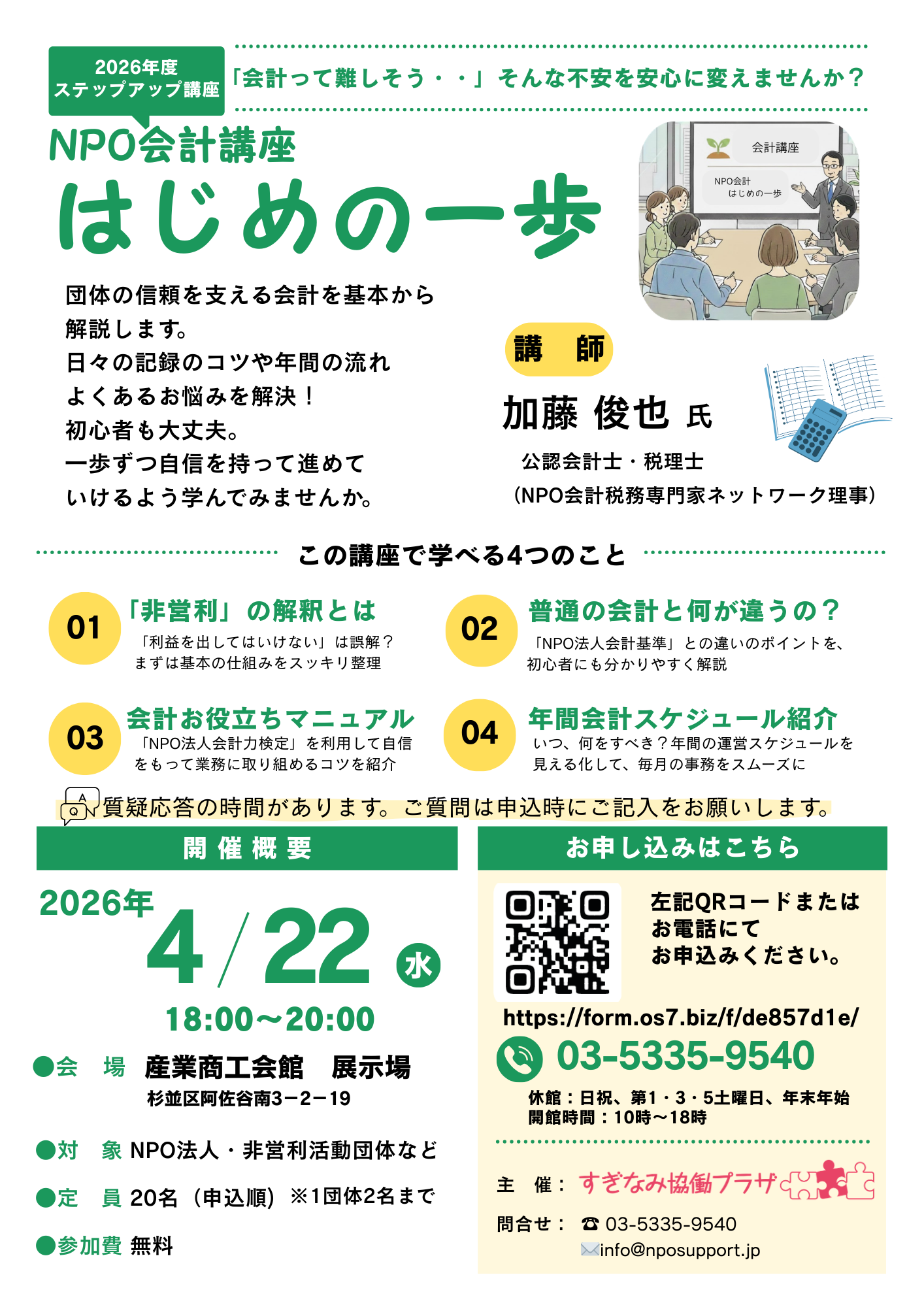 ステップアップ講座「NPO会計講座はじめの一歩」