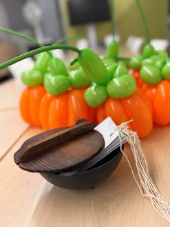 間もなくハロウィンということで、バルーンアートでかぼちゃを作り、その中に飴を入れてお土産にお持ち帰りいただきました。手作りの素朴なお土産でしたが、予想以上に皆さんに喜んで頂けたことが、プラザにとって大きな収穫となりました。