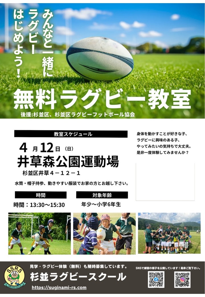 4/12(日)杉並こどもラグビー体験教室(無料)を開催いたします
