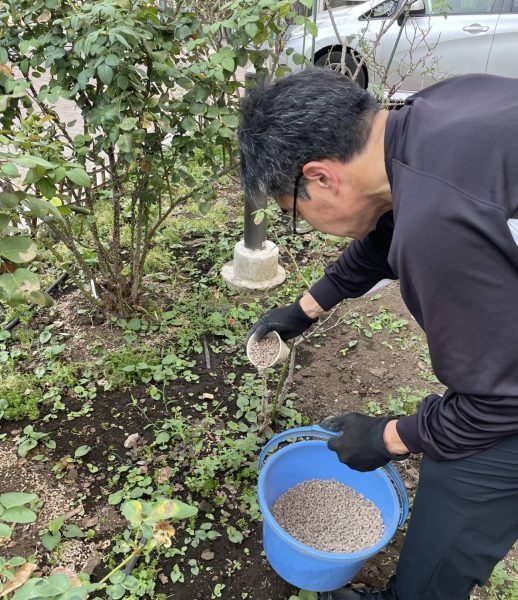 秋のバラ公開(10/11〜)に開花を合わせる為、逆算して日にち設定している