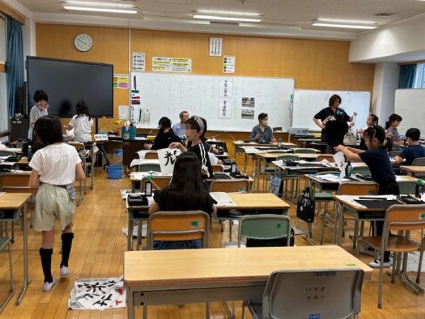 三年生の書道教室もいよいよ本格的な指導が始まりました。先生から直接筆使いを習いました。