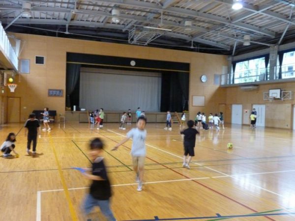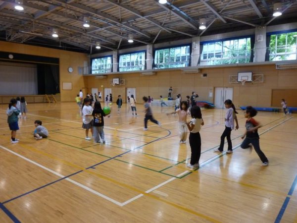 朝から雨が降り続き、外遊びは体育館をお借りしました。一年生にとっては初めての体育館での外遊びです。いつにも増して大勢の子どもたちで体育館は大熱気となりました。