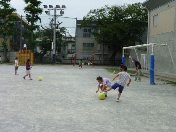 6月とは思えない晴天と猛暑が続いていましたが、今日はようやくこの時期らしい曇天です。気温は昨日までよりはやや低めですが、校庭は蒸し風呂のような高湿度。子供たちは頬を真っ赤にしながらも元気一杯に遊びました。