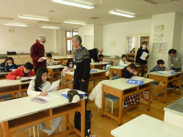 毎年末恒例の学校支援本部主催による「算数サポート冬期補習」を今年も12月26~28日の三日間、家庭科室で開催しています。初日の大嶋支援本部長の開講挨拶に続いて3~5年生14名があらかじめ選んだ苦手な単元3つを毎日ひとつずつスタッフのサポートを受けながら克服して行きます。