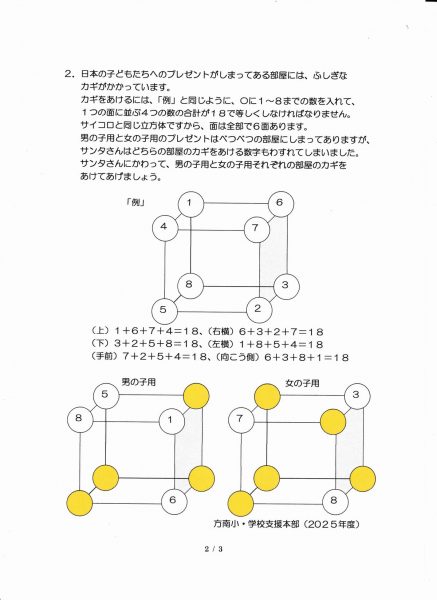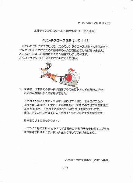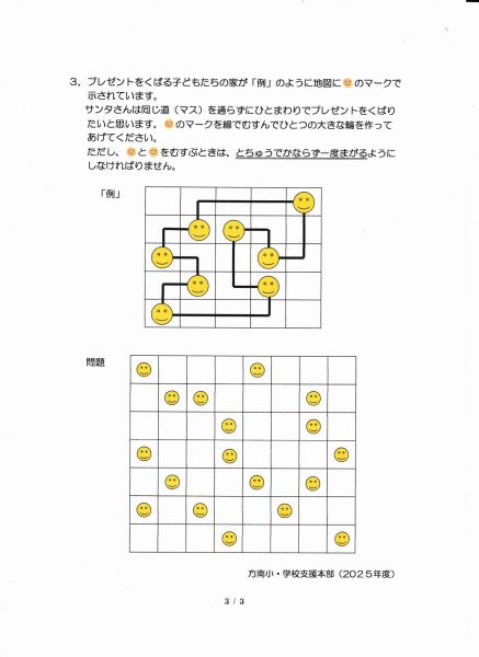 方南小学校では現在インフルエンザが大流行していて2年生では学級閉鎖のクラスも出ています。その影響もあってか今日は残念ながら4名の参加となりました。このため「おもしろ算数」は延期してプリント学習のみとしました。生徒より先生(スタッフ)の人数の方が多いという珍現象は14年間の算数サポートの歴史でも初めてとなりました。