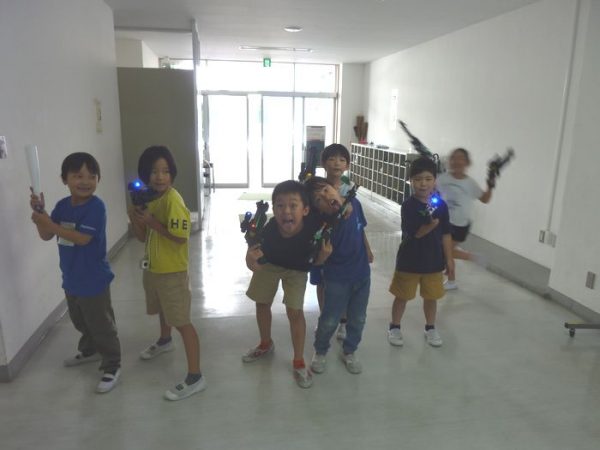 久しぶりに光と音が出るピストルが登場して子どもたちは大興奮でした。遊び場所が低学年の算数少人数教室に近いため、五時間目の授業の有無を確認しながらピストルで遊ばせています。