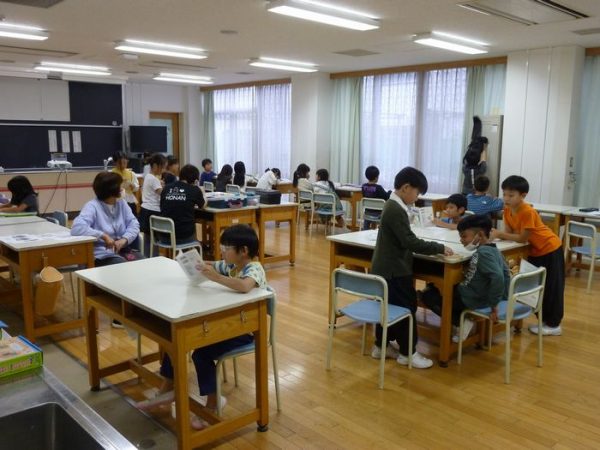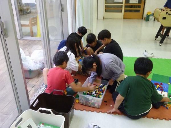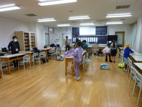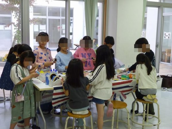 1~3年生が一斉下校となり、家庭科室も多目的スペースも廊下の突き当りの野球場?も子どもたちで一杯でした。今日はレゴと工作コーナーが特に人気だったようです。