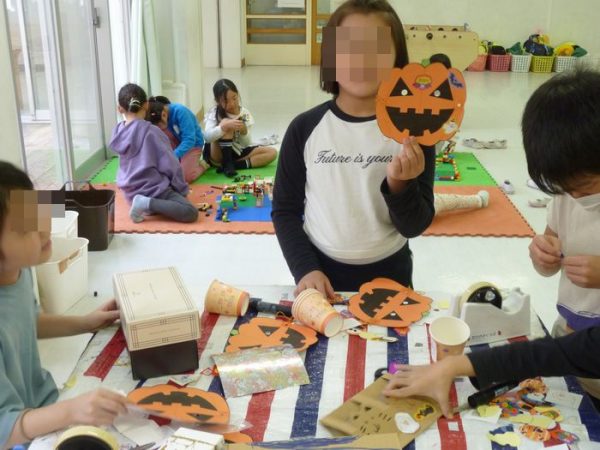 今週金曜日はハロウィーンです。スタッフからシールやお面のプレゼントがあり、それぞれの好みに応じて素敵なグッズを作っていました。