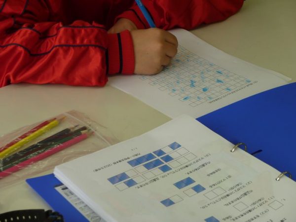 方南小学校では現在インフルエンザが大流行していて2年生では学級閉鎖のクラスも出ています。その影響もあってか今日は残念ながら4名の参加となりました。このため「おもしろ算数」は延期してプリント学習のみとしました。生徒より先生(スタッフ)の人数の方が多いという珍現象は14年間の算数サポートの歴史でも初めてとなりました。