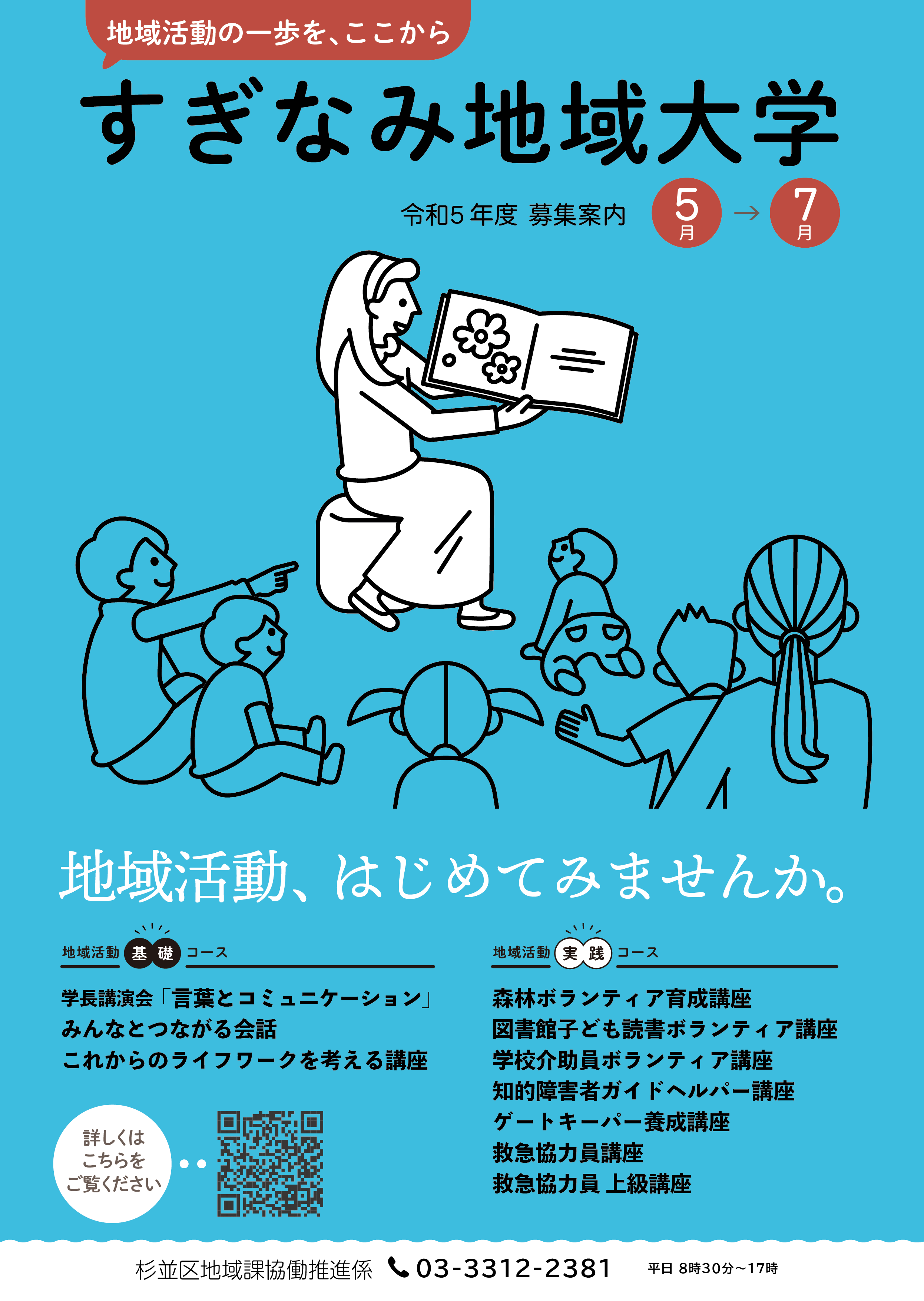 あなたの大切な人が突然倒れたら、あなたは冷静に対応できますか? 身近な場所で傷病者が発生したときに、医師や救急隊が到着するまでの間、適切な応急救護活動を行うための知識や技術を学ぶ講座です。東京消防庁認定の普通救命講習及び杉並区の救命救急体制の現状や救急協力員制度の概要・役割についての講義のほか、主に実習形式で心肺蘇生法とAED(自動体外式除細動器)の操作方法等を学びます。■ ①②、いずれかの1日をご受講ください。